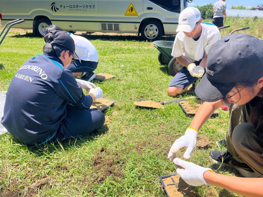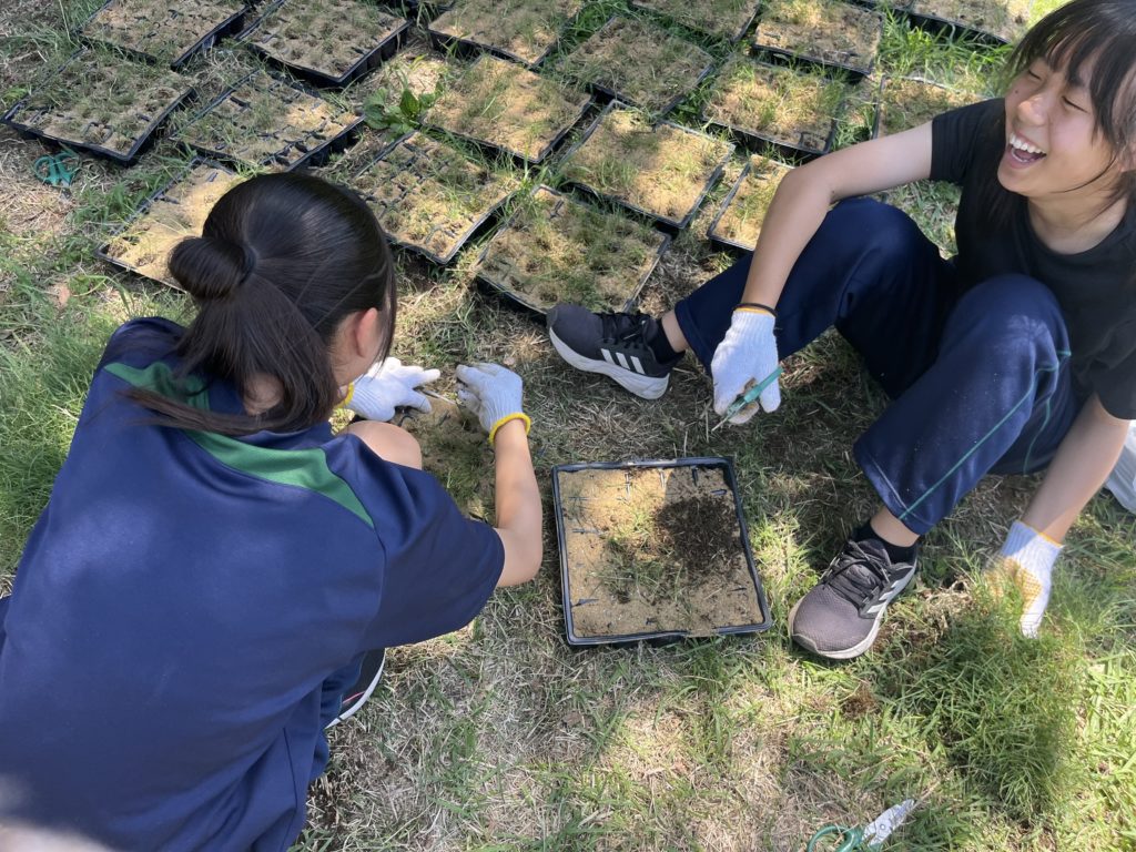 炎天下にもかかわらず、部員たちは一つひとつ丁寧に苗をポットに植え、水分補給や休憩を取りながら粘り強く取り組みました。